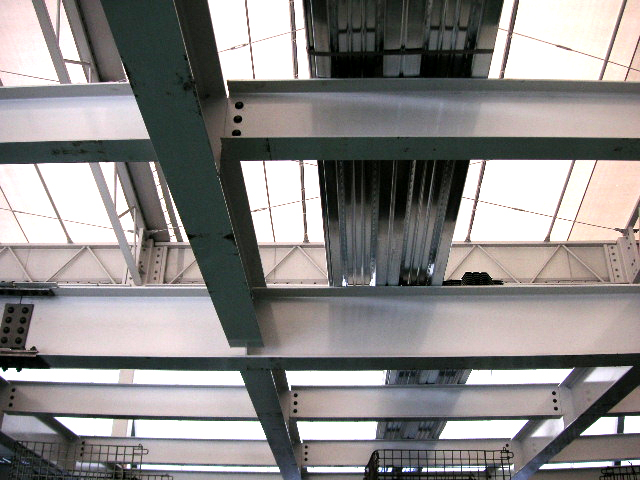 骨組み姿このように広いスパンでも鉄骨だから出来る。